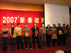 華夏歡唱四海正逢盛世春,瑞雪紛飛九州已兆豐收景”,在“金豬送福”的祝福聲中集團各單位員工歡聚一堂,共同回顧2006暢想2007。會場上歡聲笑語,文藝節目精彩紛呈,抽獎環節激動人心。董事長為在集團工作十年以上的老員工頒發“十年特殊貢獻獎”,更讓大家體會到華瑞以人為本的文化特色,體會到集團董事會對員工無微不致地關懷。